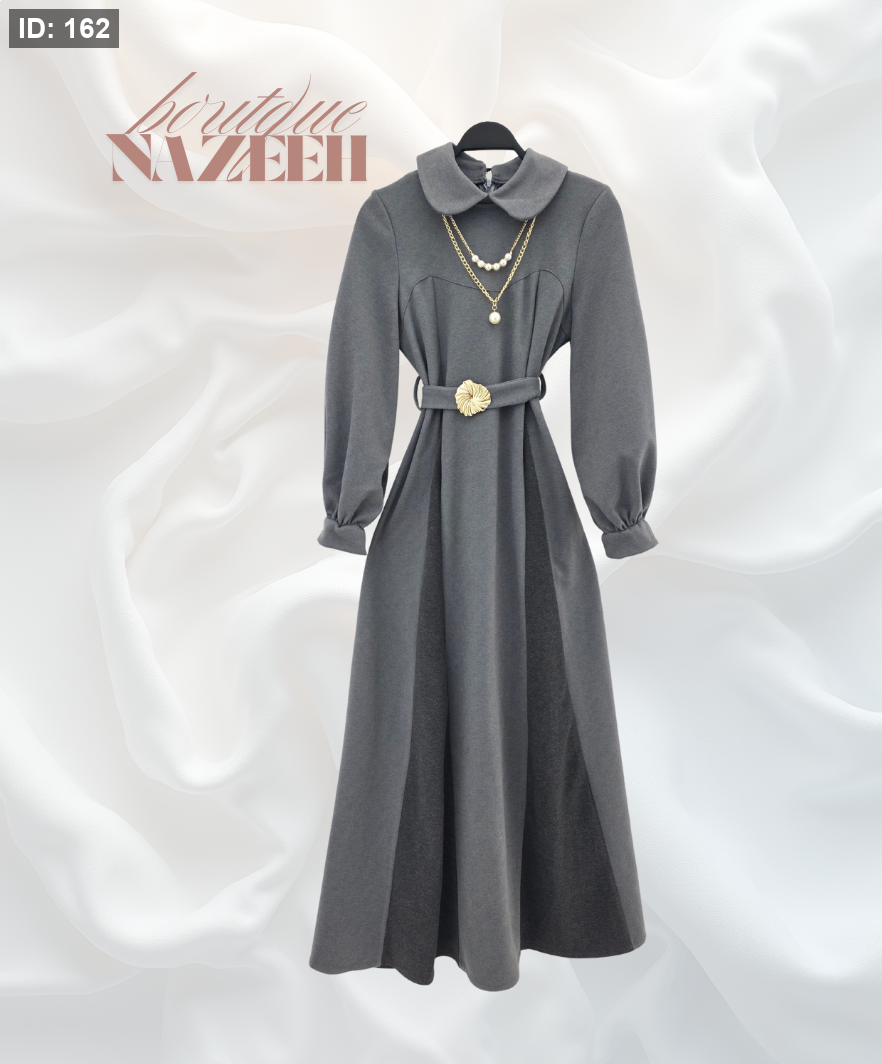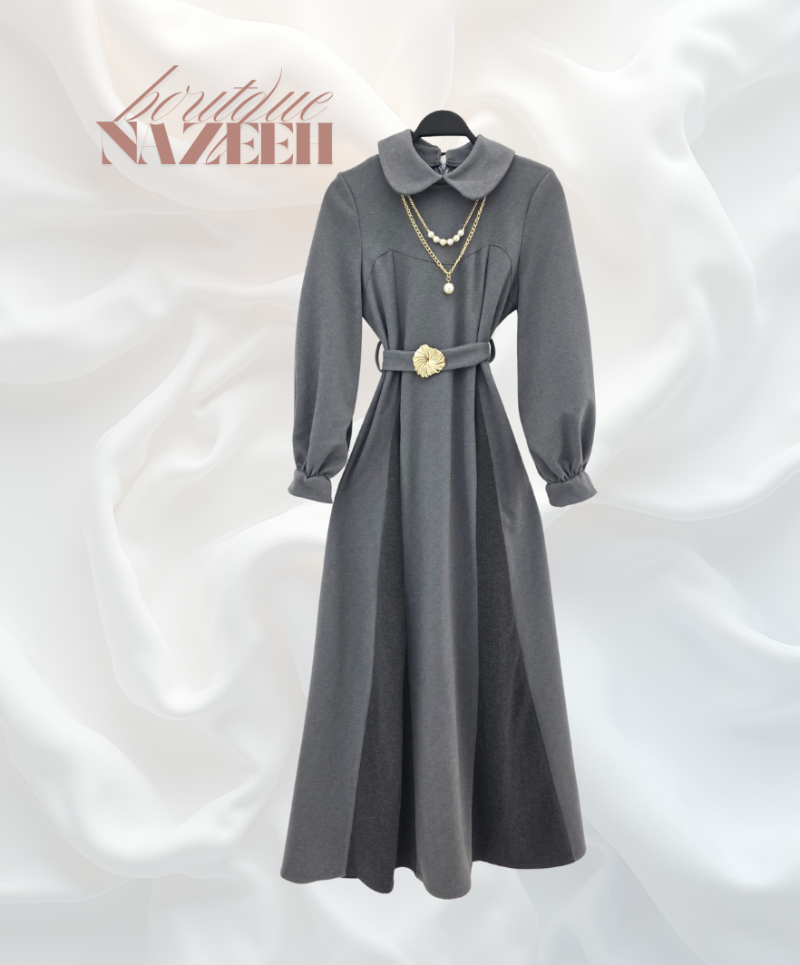 فستان جوخ مع حزام على الوسط كلوش مع سنسال
