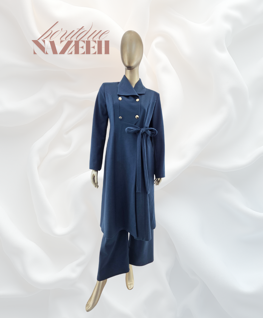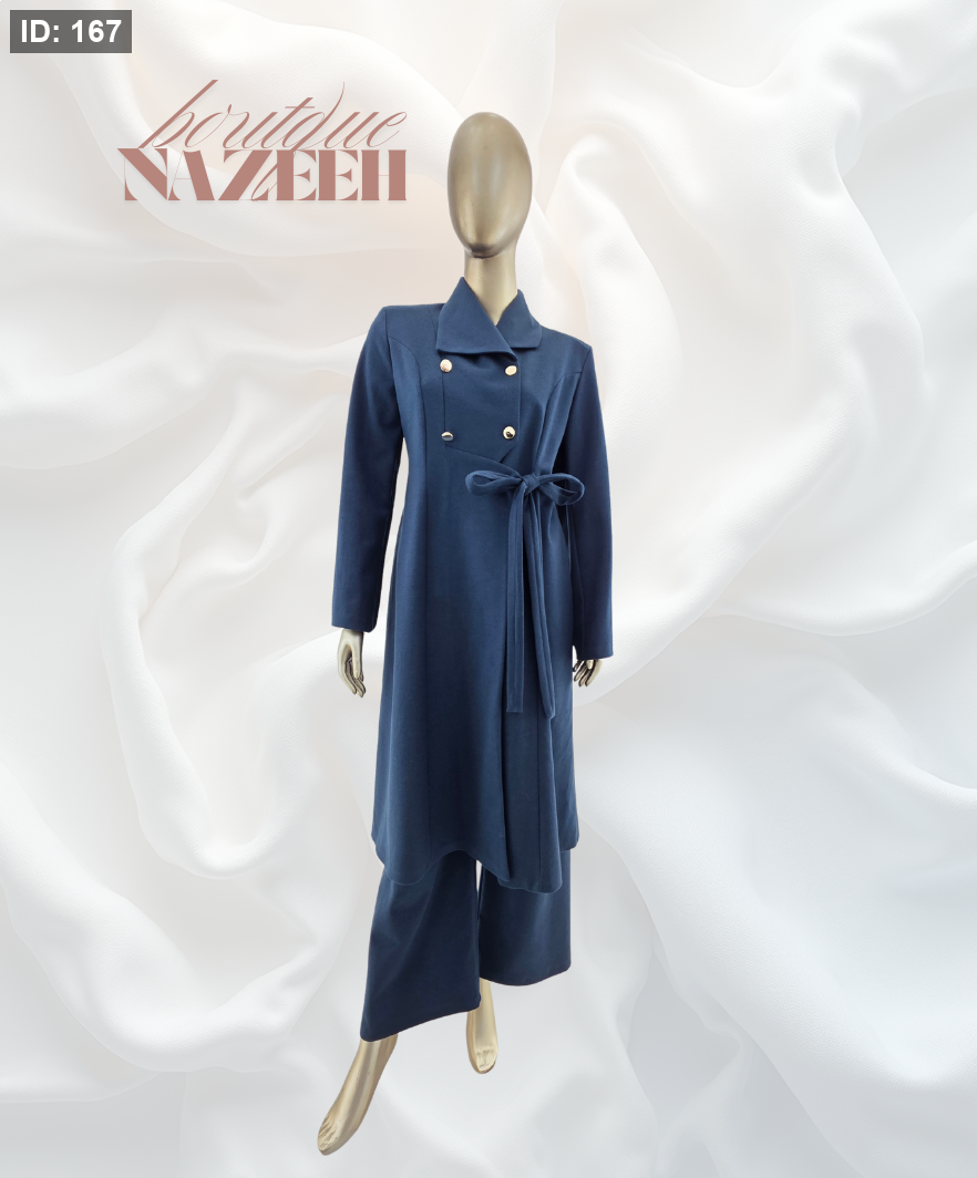 طقم شتوي جوخ طويل مناسب للعمل والمشاوير بنطلون خصره مغيط عريض انيق مريح في اللبس