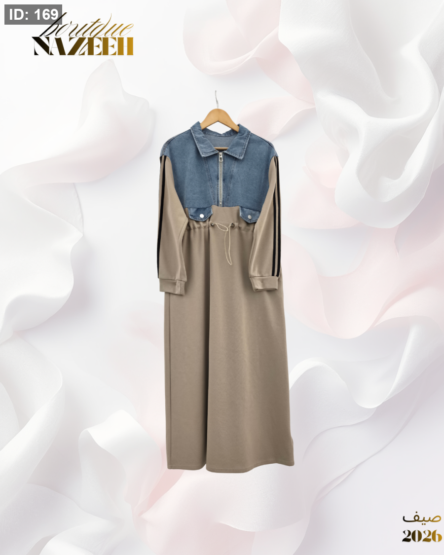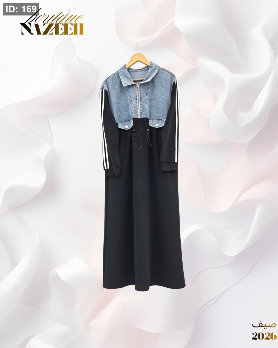 فستان جينز عملي مناسب للجو الربيعي القماش فوتر وجينز