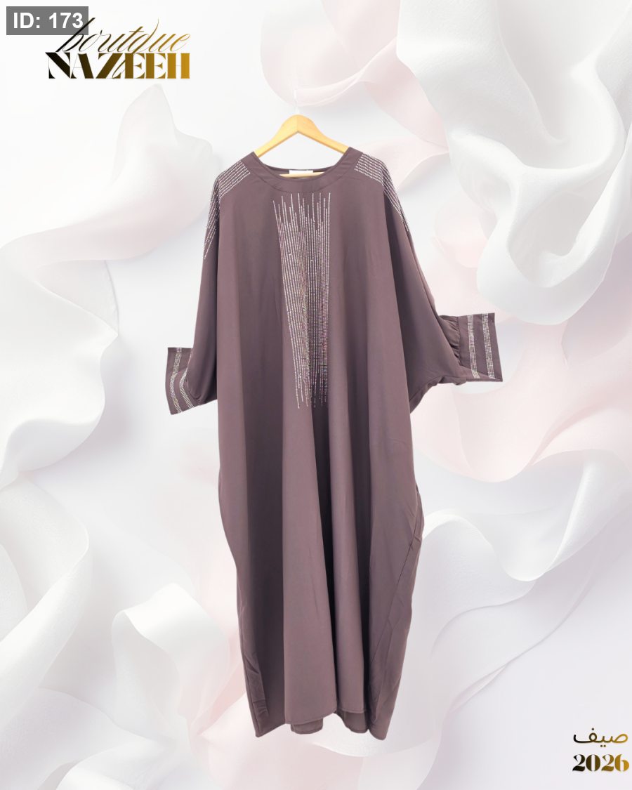 عباية فلو خامة الستان الخفيفة مزينة بالخرز