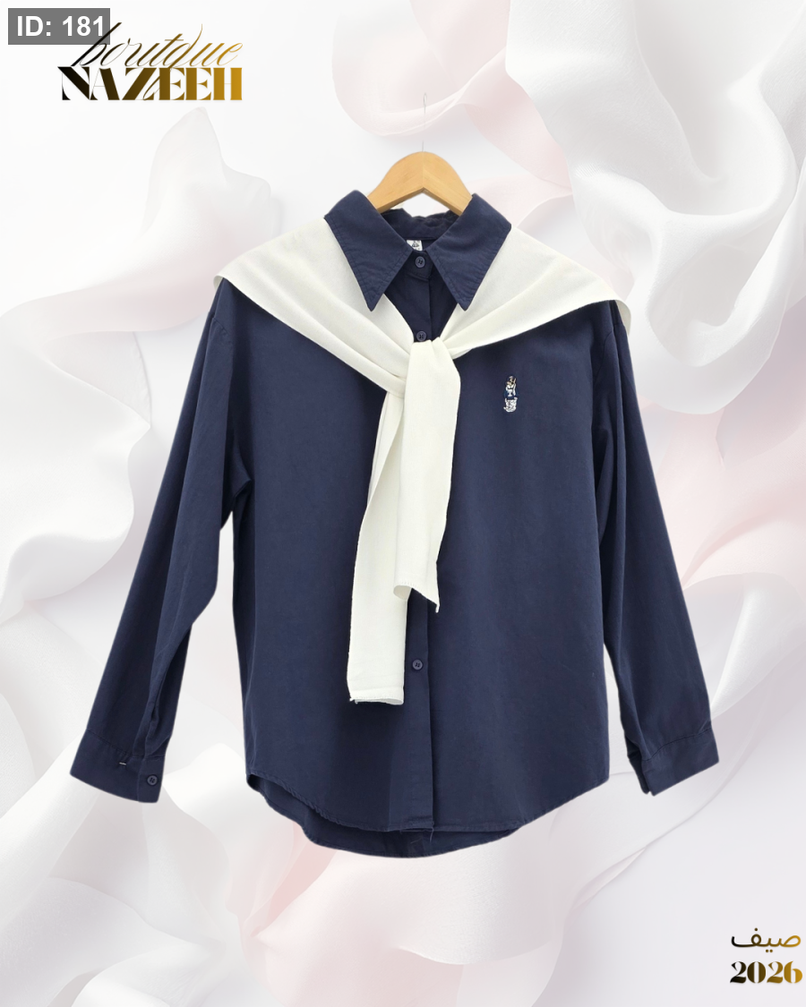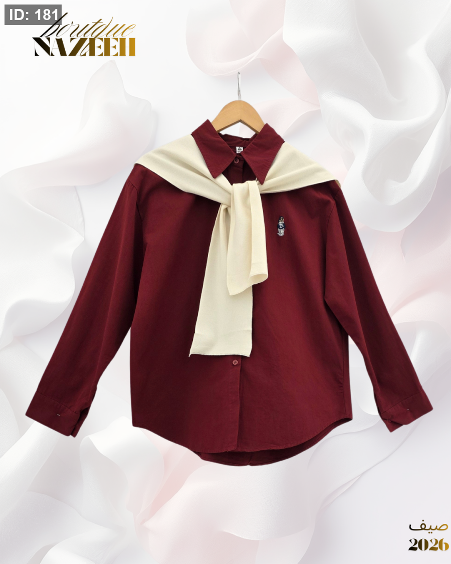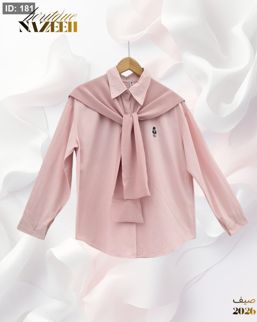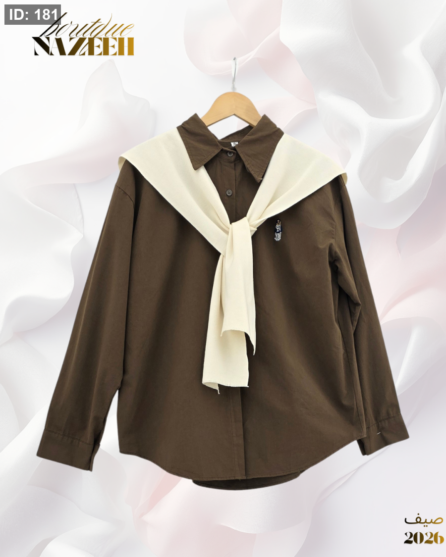 قميص مع سكارف بتصميم انيق باكمام طويلة مناسب للاطلالات اليومية (السكارف منفصل عن القميص)