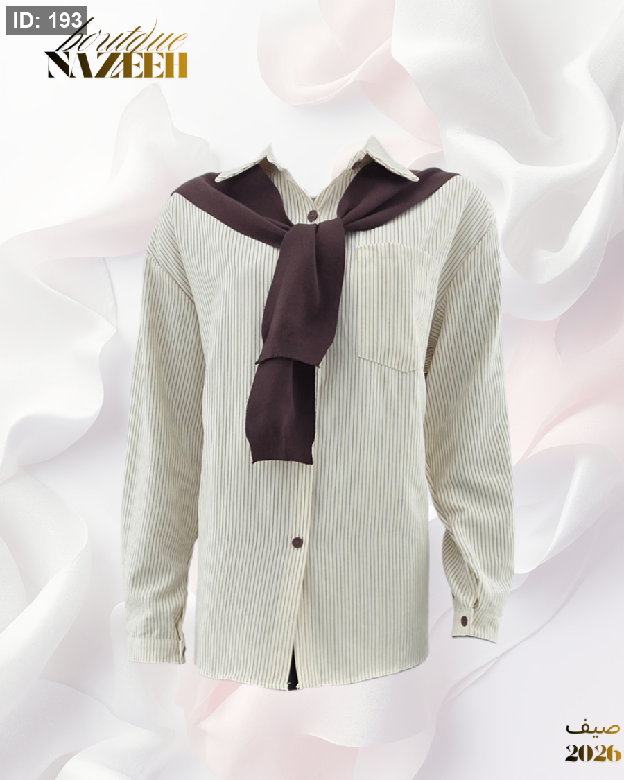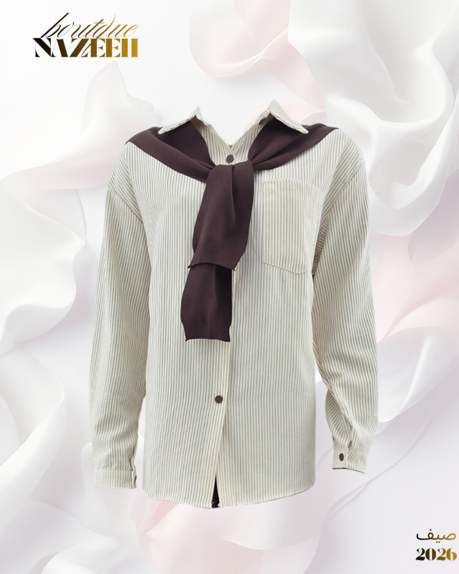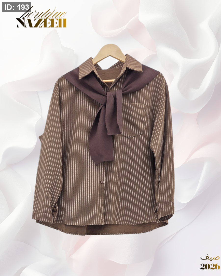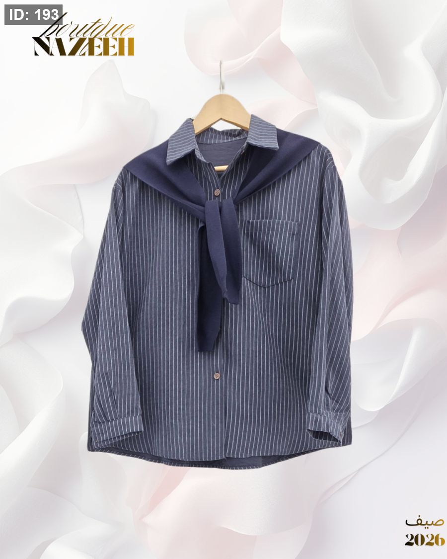 قميص مخطط بشكل طولي مع سكارف انيق (السكارف منفصل عن القميص)