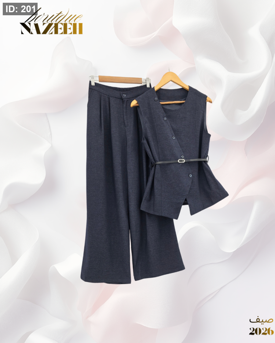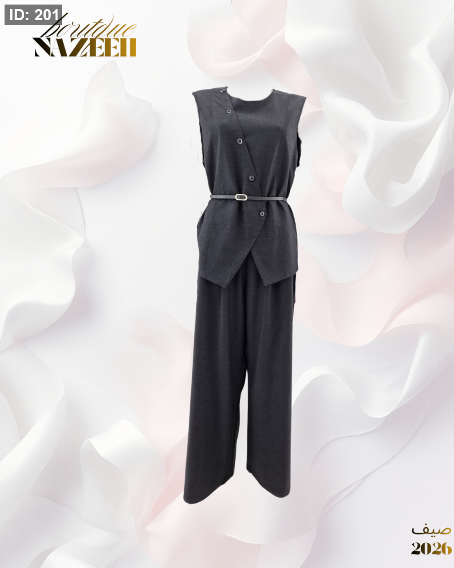 طقم انيق يتكون من فست مع بنطلون واسع وحزام على الخصر