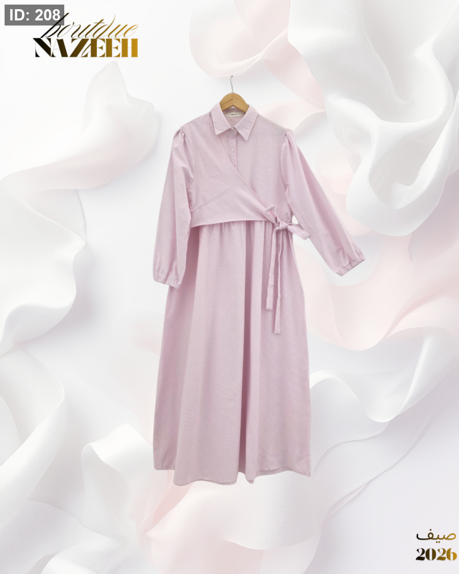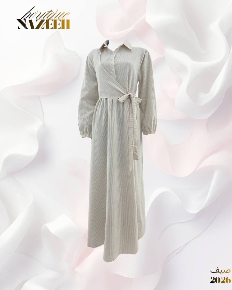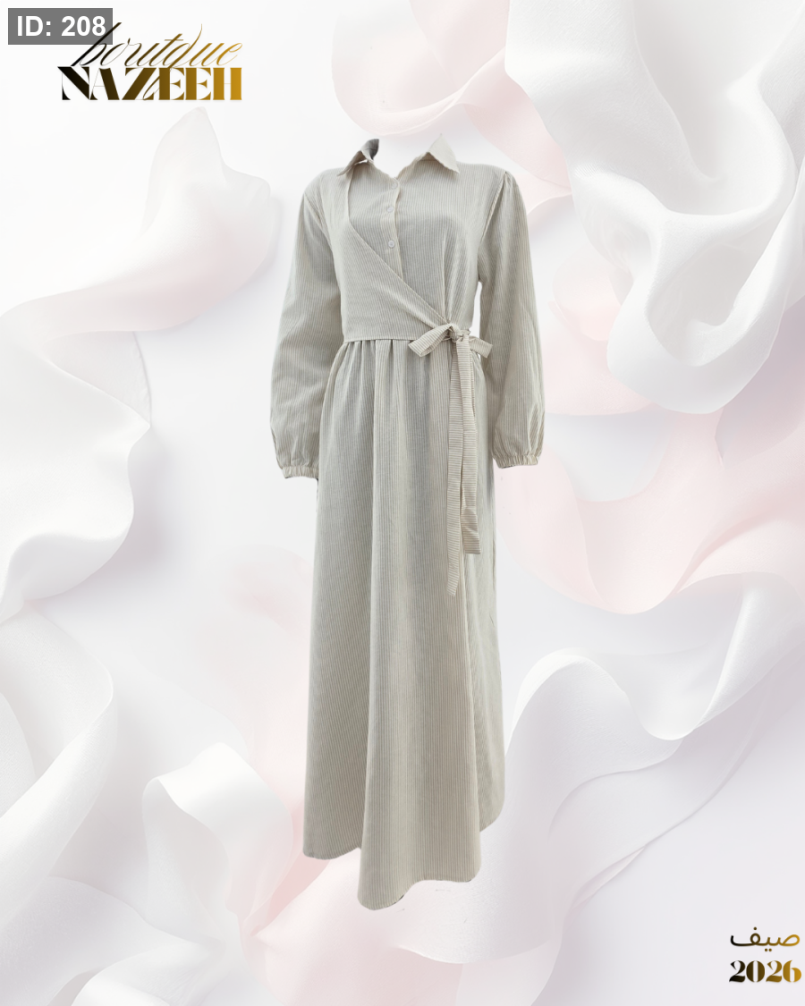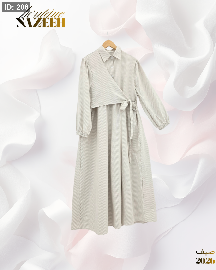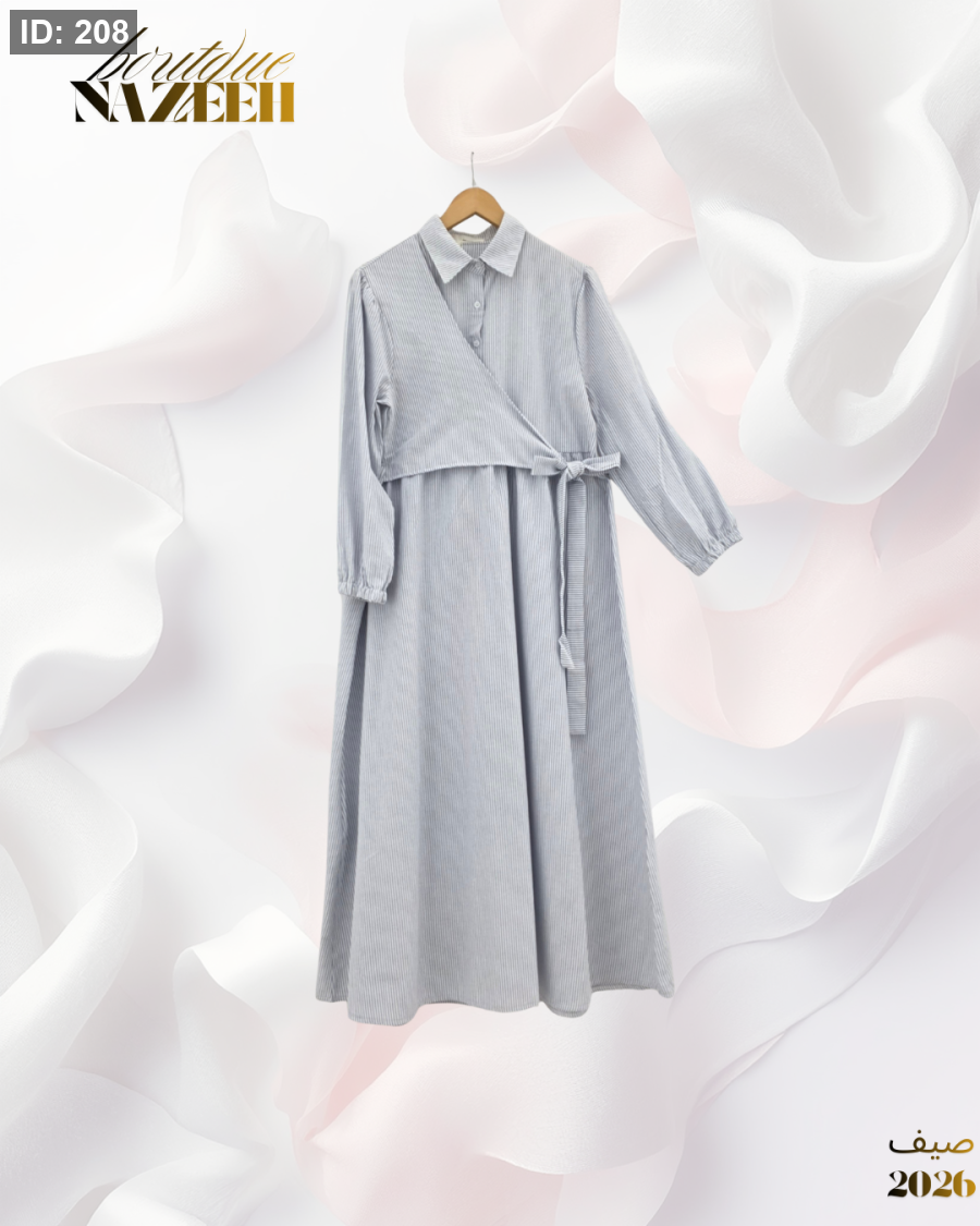 فستان عملي مخطط طويل مع ربطة عند الخصر بقماش صيفي