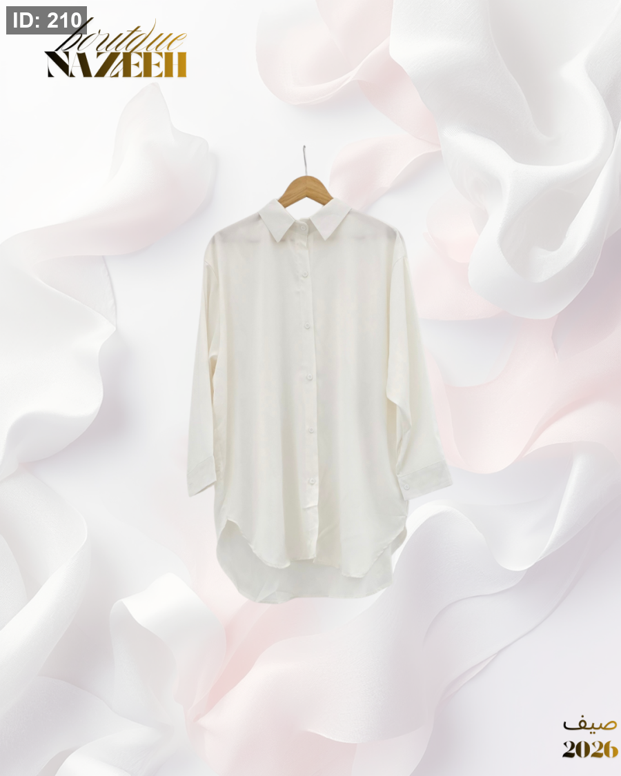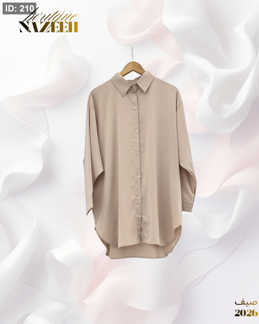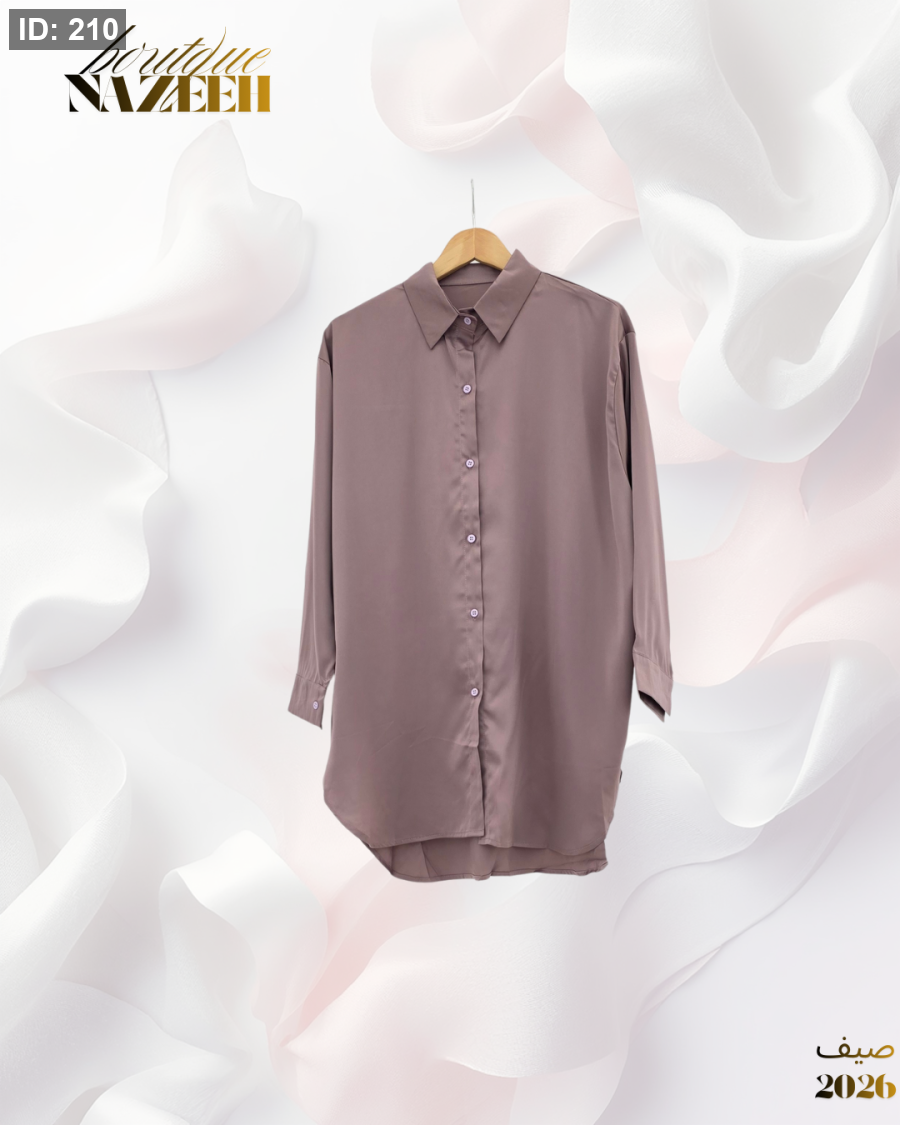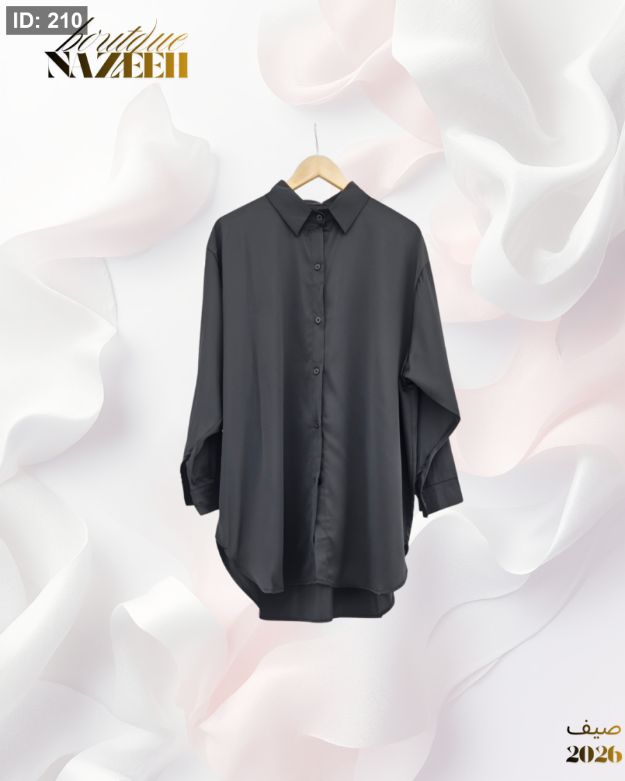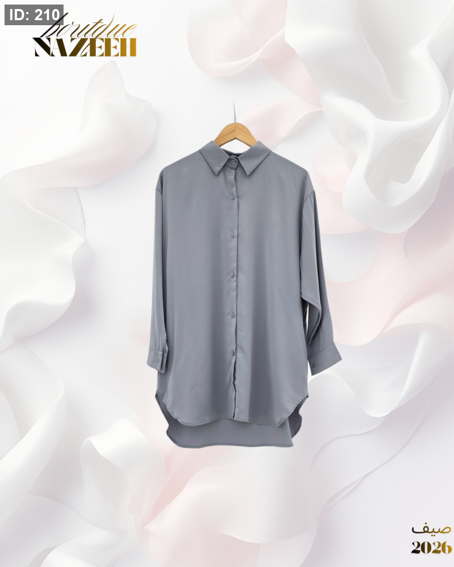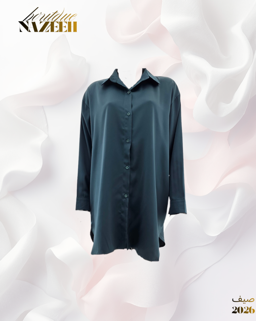 قميص عملي بطول متوسط بقصة فلو بقماش الساتان الناعم