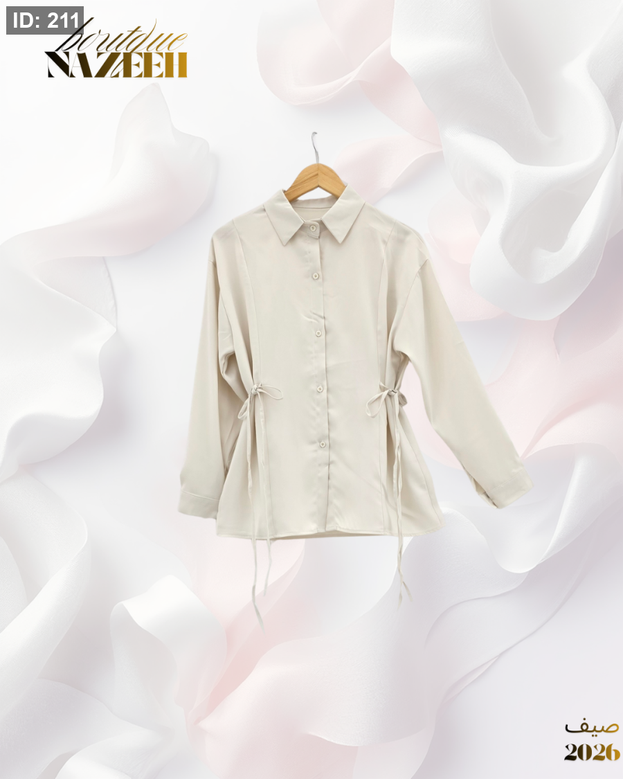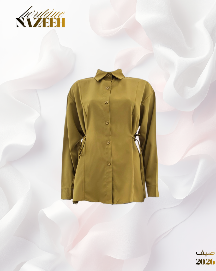 قميص مع ربطة على كلا الجانبين عملي قماشة صيفية عملي مناسب ليوم يوم