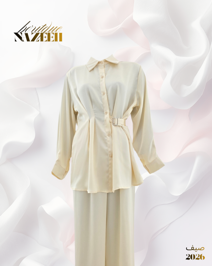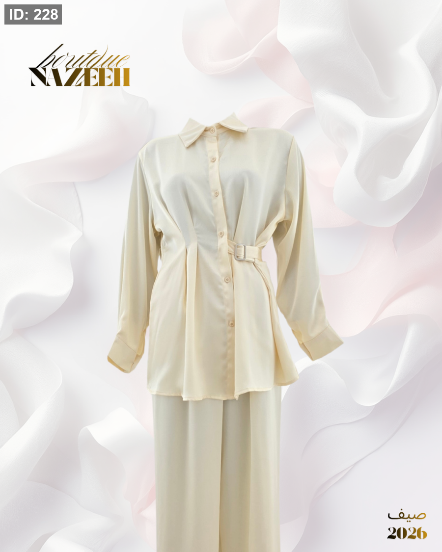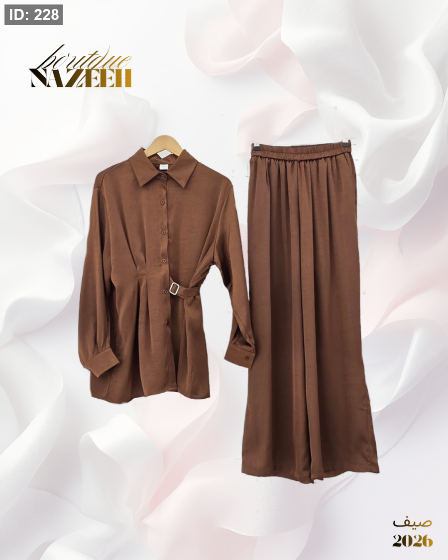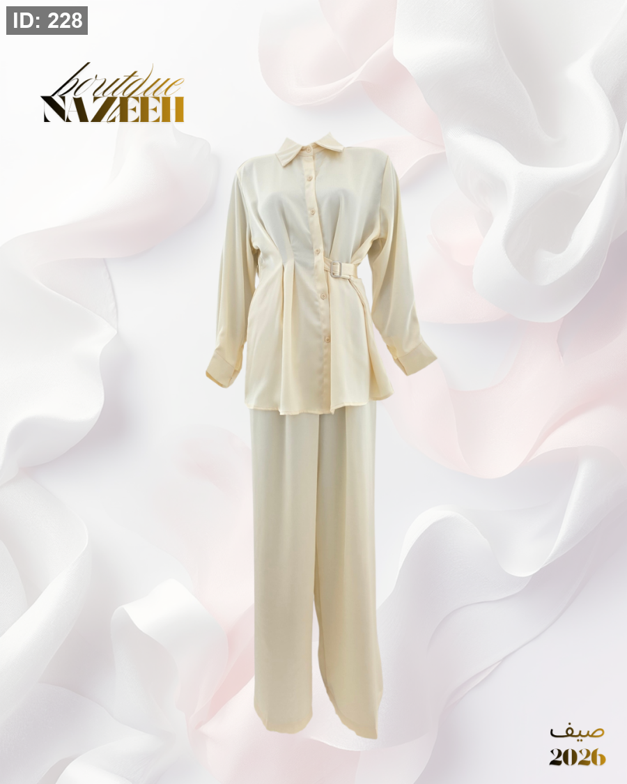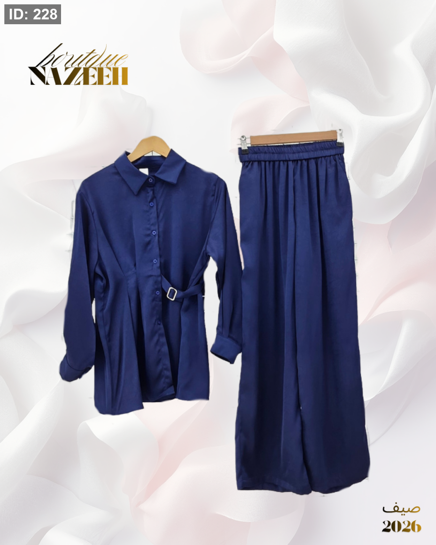طقم ستان يتكون من قميص مع ربطة وبنطلون واسع