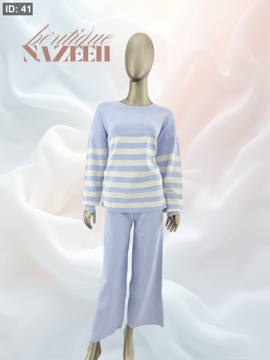 بلوز مخطط بالعرض خطوط عريضة مع بنطلون سادة