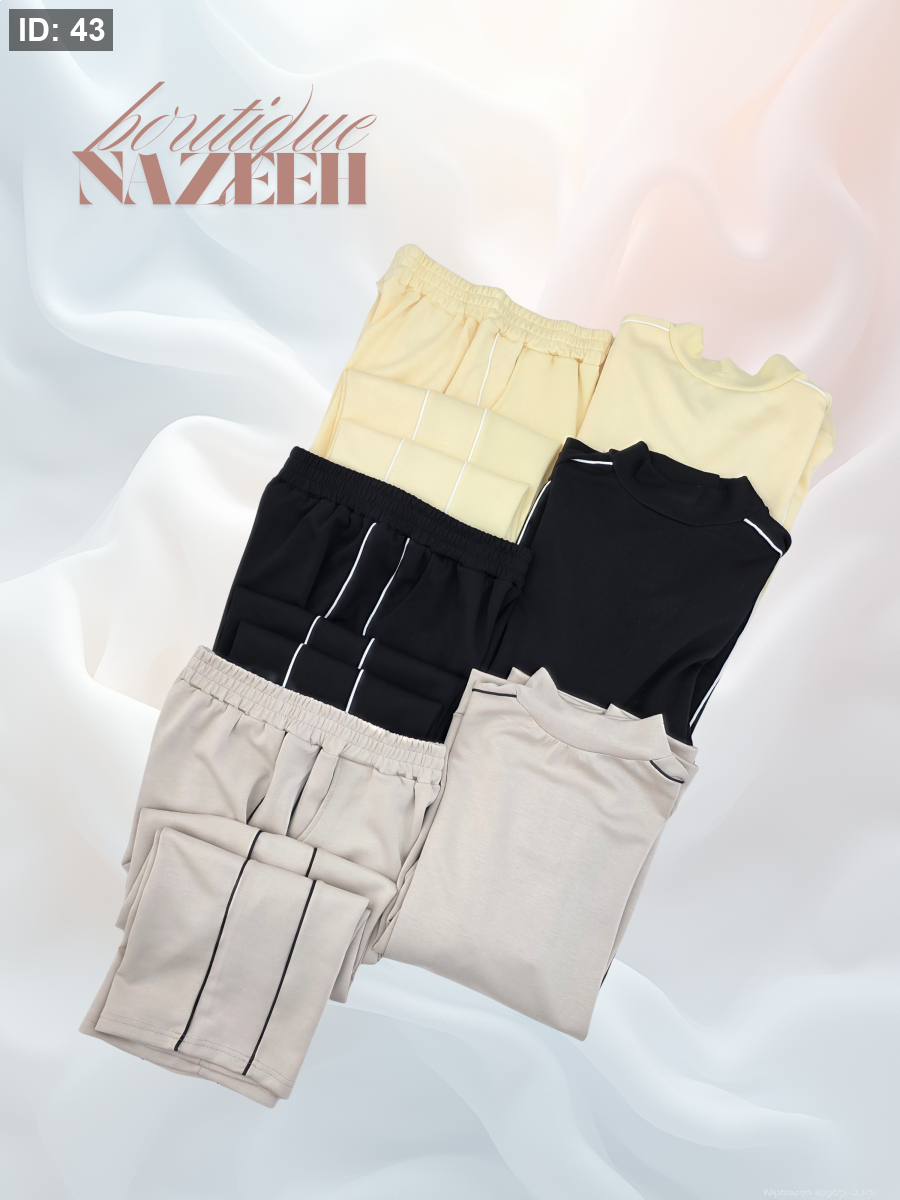 مع وجود خطوط بيضاء خفيفة وبارزة تزيد الطقم جمالا
