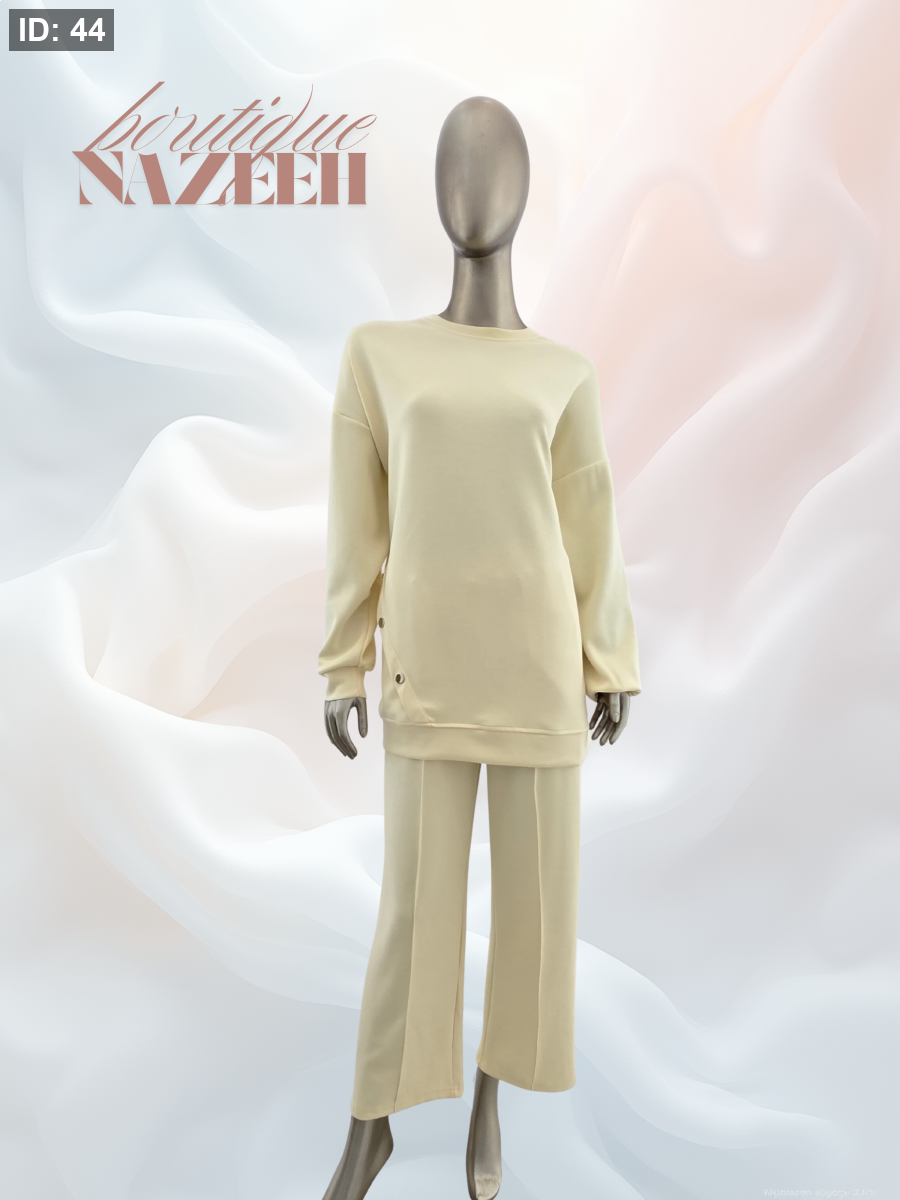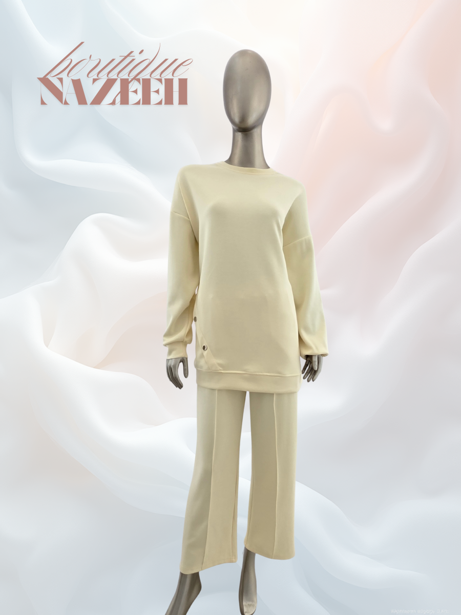 مع وجود ثلاث ازرار عند الخصر يزيد الطقم جمالا