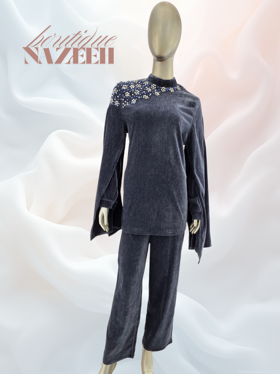 طقم شتوي قطعتين مخمل لمناسباتكي لتكوني متميزة