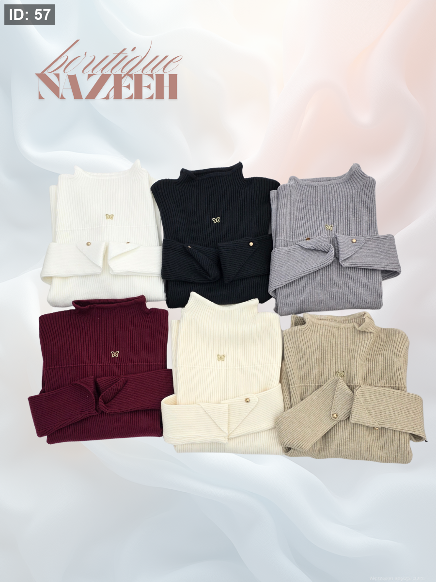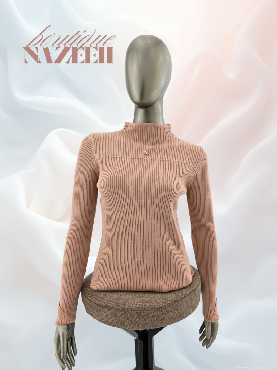 خط بارز اعلى الصدر مع بروش صغير فراشة ناعم مع ثنيتين للاكمام مميزة على شكل مثلث